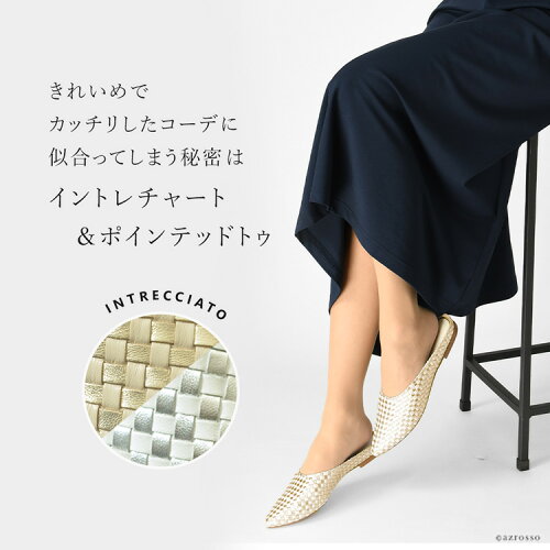 とんがりすぎない上品なポインテッドトゥがつま先をカバーし、ぺたんこのフラットシューズでも足を綺麗に見せてくれます。