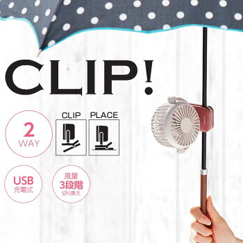 \ 暑い日にピッタリ /挟んで持ち運べるクリップ式ミニ扇風機 ●部活やアウトドア、フェス、旅行、ゴルフ、営業回りや就活などに持ち運びしやすいコンパクト設計 ●外出時に便利なUSB充電式 ●クリップ式だから、鞄や日傘に挟める♪