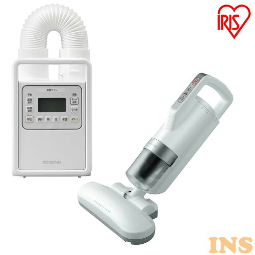 【布団乾燥機 カラリエ シングルノズル FK-H1】■商品サイズ(cm)幅約16.8×奥行約15×高さ約38■重量約1.8kg■電源コード長約1.9m■電源AC100V(50/60Hz共用)■消費電力(高温風時)850W■タイマー5・15・30・45・60・75・90・120・180分■安全装置温度センサー、サーモスタット、温度ヒューズ■付属品くつ乾燥アタッチメント【布団クリーナー ホワイト IC-FAC2】■使用時サイズ(cm)幅約25×奥行約45.9×高さ約21.2■収納時サイズ(cm)幅約25×奥行約14.4×高さ約40.3■超ワイドたたきパッド約20cm■重量約1.6kg(電源コード含む)■電源AC100V(50/60Hz)■消費電力400W■コードの長さ約4m■振動回数毎分約5800回■吸引仕事率約70W■集塵容量約0.2L■セット内容掃除機本体、集じんフィルター(本体に取り付け済み)、排気フィルター(本体に取り付け済み)、コードバンド(本体に取り付け済み)布団乾燥機 カラリエ シングルノズル FK-H1と布団クリーナー IC-FAC2のセットです。